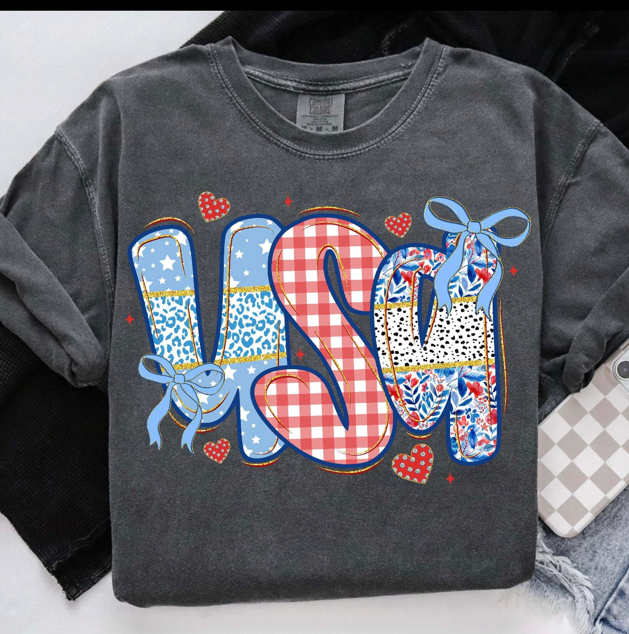 TRANSFER - 165- USA patchwork/bows