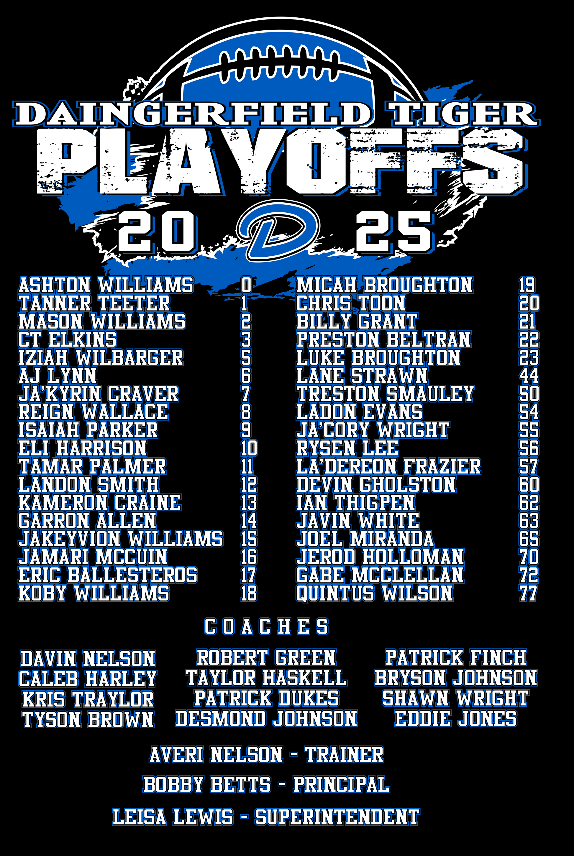 A PORTION OF ALL PLAYOFF PURCHASES WILL BE DONATED TO THE DAINGERFIELD ATHLETIC BOOSTER CLUB!